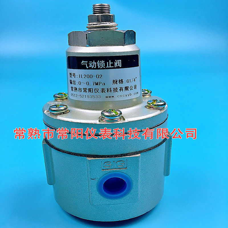 常陽儀表的IL200-02型氣動鎖止閥是氣動單元組合儀表 輔助單元之一。當儀表氣源系統發生故障時,鎖止閥能自動切斷調節器與閥門的通道,使閥門保持在原來位置,以保證工藝過程的正常進行,直到氣源故障消 除后,恢復正常工作。因此,氣動鎖止閥適用于重要自動控制回路中作為安全保護裝置。