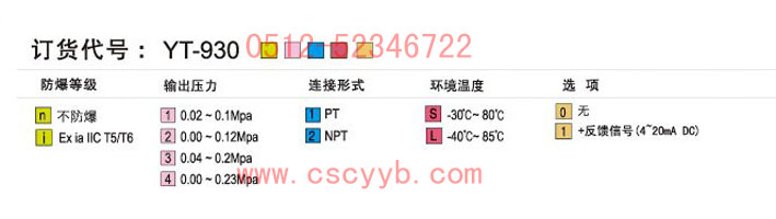 動(dòng)作原理 作為輸入信號(hào)被提供到 YT- 930,壓力傳感器,其連接到輸出端口,將感測(cè)的壓力水平。電路主板將比較輸入信號(hào)和輸出壓力水平,增加或減少力矩馬達(dá)的電流。 選型表  |