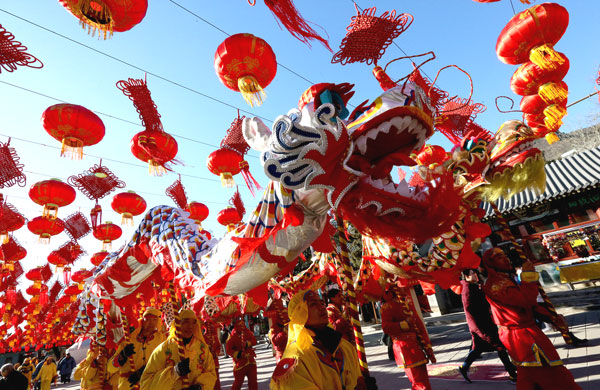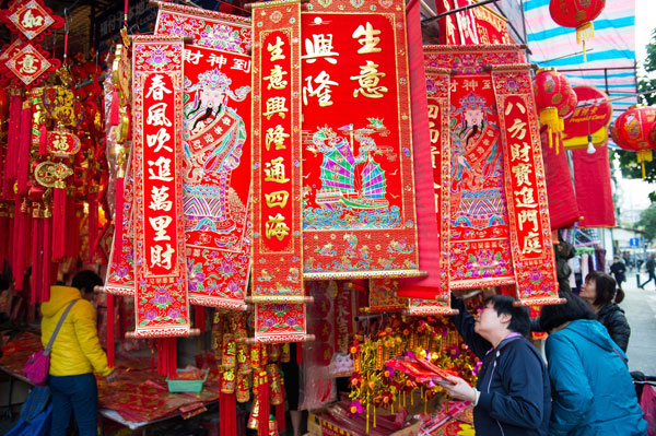 吃完年夜飯之后,新年就真的到了眼前,然后高高興興上街買對聯(lián)、新年掛飾,鞭炮等。大街上一片紅火,琳瑯滿目的對聯(lián)都要挑花了眼。  當然,過年的氛圍可不止這些,小編也不一一舉例了,總之一句話:開開心心過大年嘍! |